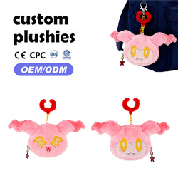 Custom Cute Cartoon Character Wallet with Zipper Keychain Wholesale Anime Figure Mini Plush Coin Purse Bag Pendant Charm
